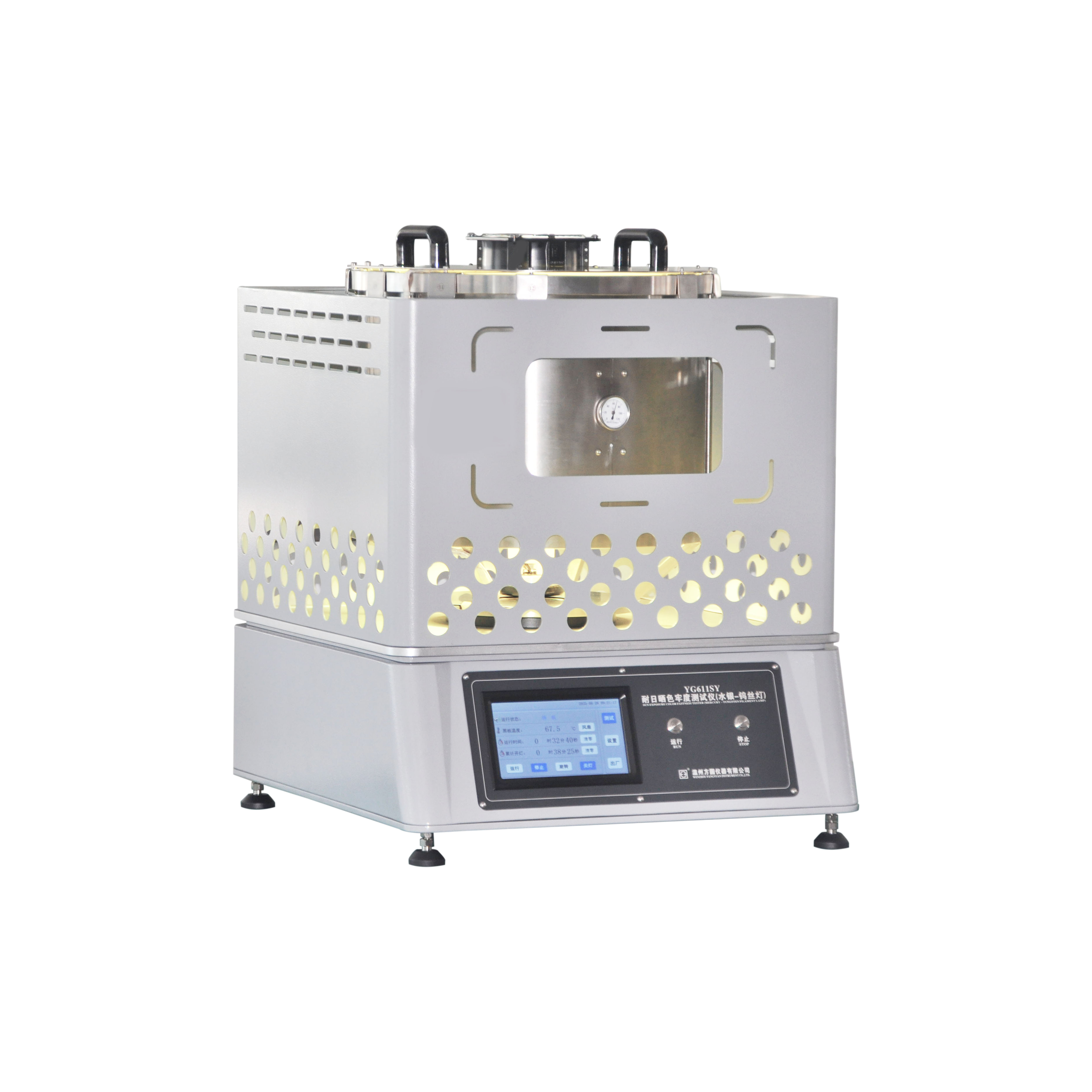 YG611G風(fēng)冷式日曬氣候色牢度儀 GB/T8427-2019、GB/T8427-2008、GB/T8430、GB/T14576、GB/T15102、GB/T15104、ISO105-B02、ISO105-B04、ISO105-B06、AATCC16,169、JIS 0843、GMW 3414、SAEJ1960、1885,JASOM346,PV1303, ASTM G155-1、155-4等。